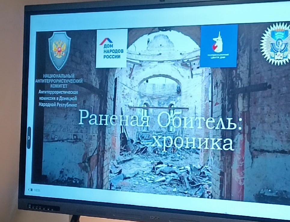 03 марта 2026 года на базе Дома народов России в Донецкой Народной Республике при содействии антитеррористической комиссии в Донецкой Народной Республике во взаимодействии с Координационным центром по вопросам формирования у молодежи активной гражданской позиции, предупреждения межнациональных и межконфессиональных конфликтов, противодействия идеологии терроризма и профилактики экстремизма состоялась презентация документального фильма итальянского военного корреспондента Витторио Ранджелони «Раненная обитель: хроника». На премьере фильма присутствовало более 60 представителей студенческой молодежи Республики.