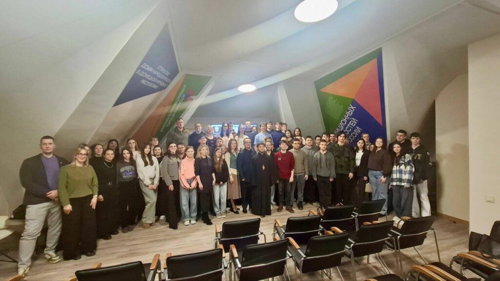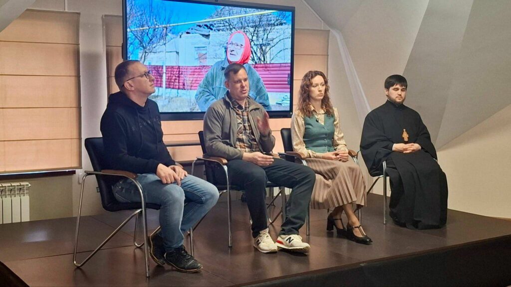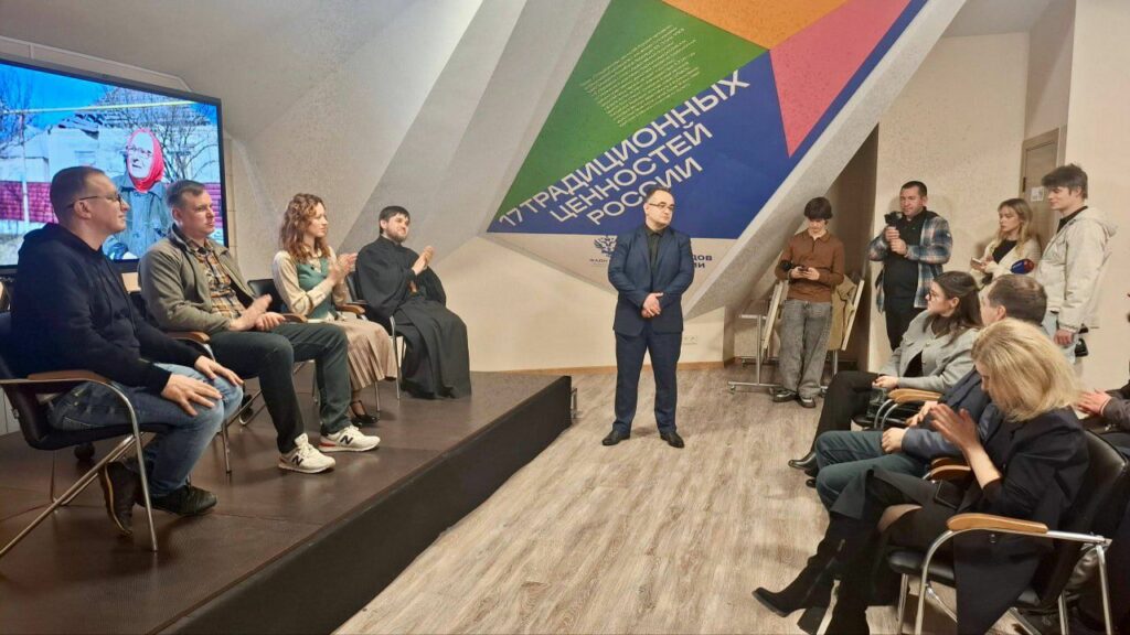В диалоге с молодежью после показа фильма приняли участие: его создатели, настоятель Свято-Николаевского храма, протоиерей Евгений Аксенов, руководитель Дома народов России в ДНР Ирина Белякова и главный советник аппарата АТК в ДНР Андрей Селиван.